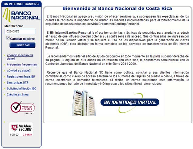 Si el usuario ya subió de nivel de seguridad le aparecerá la siguiente pantalla,