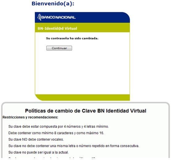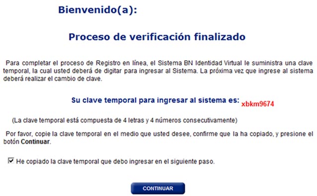 Si la clave fue digitada de forma correcta, aparecerá el mensaje “Su contraseña