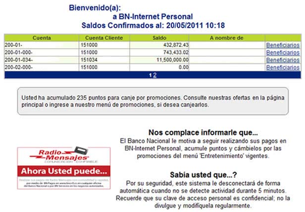Se le debe presentar la pantalla donde se reflejan los saldos. El cliente procede