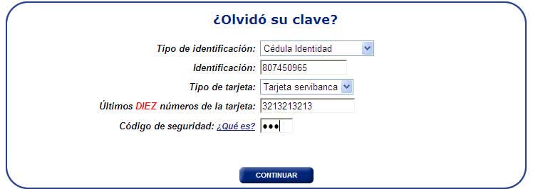 Se presenta la siguiente pantalla “Olvidó su clave” donde se solicitan datos